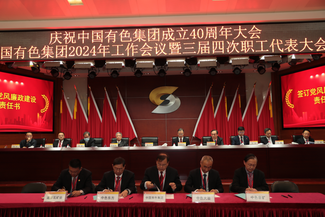 会议还签订了出资企业经营业绩、安全环保、党风廉政建设责任书,进行了研讨发言,发布了《中国有色集团贯彻落实习近平总书记三次重要指示批示精神行动方案(2024年版)》《中国有色矿业集团有限根据南宫NG2840周年科技成果纪念册》,顺利获得了《中国有色矿业集团有限根据南宫NG28三届四次职工代表大会决议》。
