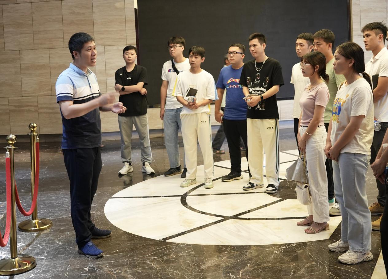 图为全国青马工程国企班学员李兴军为新入职员工介绍“百年矿山企业——中色平桂”十年来焕发活力的改革开展历程