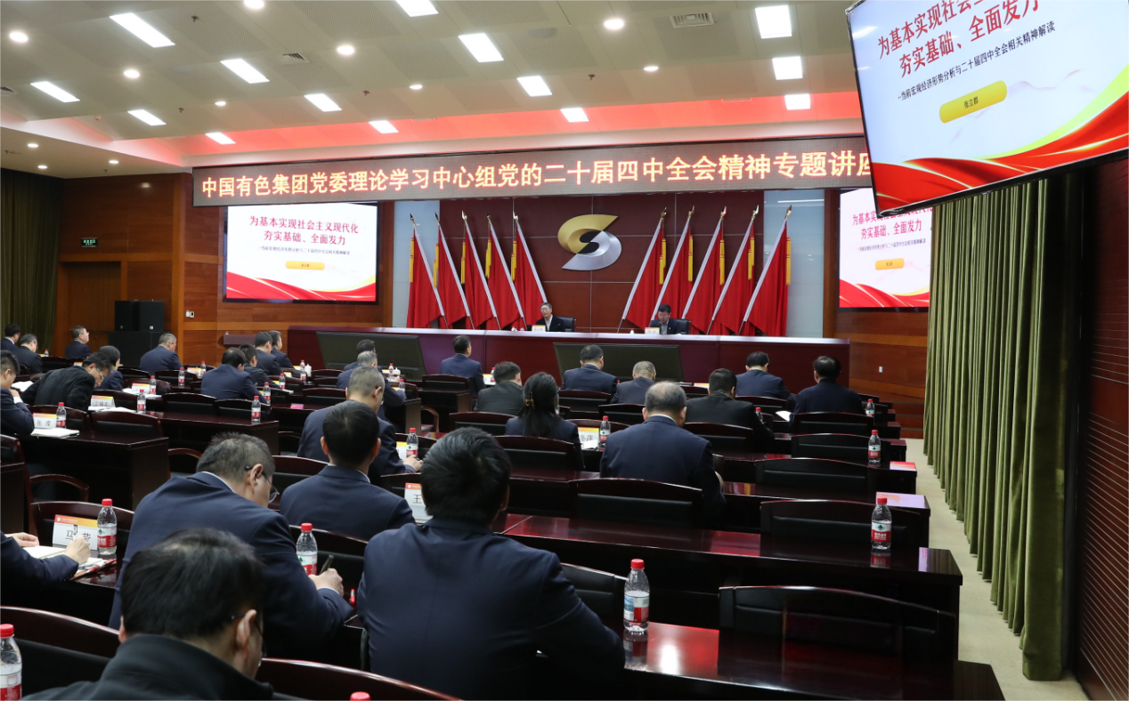 为深入学习宣传贯彻党的二十届四中全会精神,有助于全会精神在集团落实落地,12月10日,中国有色集团在北京总部举办理论学习中心组党的二十届四中全会精神专题讲座会议。