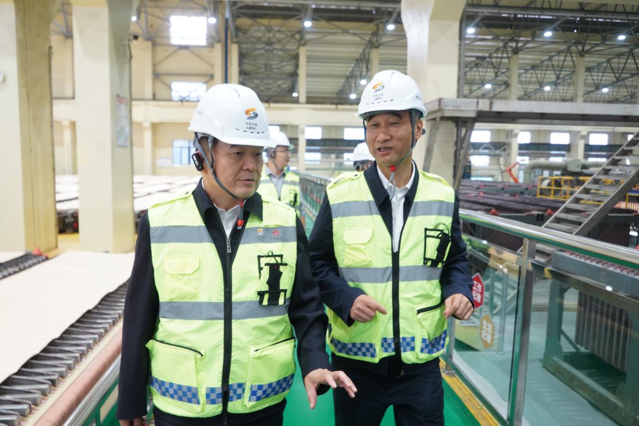 文岗一行实地考察了丰山铜矿尾矿库、管控中心及弘盛铜业智控中心、化验室、电解车间,详细分析了企业环保督察整改、数字矿山和智能工厂建设等情况。