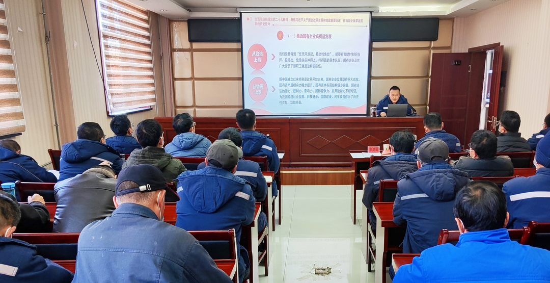 11月26日,新疆汇祥永金根据南宫NG28书记讲授专题党课,宣讲党的二十大精神。该根据南宫NG28领导班子成员、各车间部室科级管理人员及部分党员参加学习。